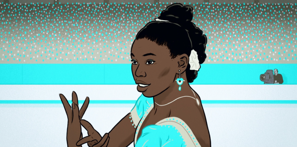 A história de Duzyj como animador (veja esta gloriosa ilustração do ex-repórter da NFL Ed Hochuli explicando “O Dougie” ) traz um estilo visual distinto para o modo como essas várias histórias se desdobram. Mesmo nos momentos mais decepcionantes, há uma energia nas sequências animadas que se elevam acima de um simples truque de documentário. Em muitos casos, esses acompanhamentos animados sublinham o quanto esses momentos surgem em competições destinadas a serem jogos, em vez de eventos cósmicos que moldam a identidade do jogador e do espectador. Ao mesmo tempo, estes também enfatizam a arte distinta que levou esses mestres em seus respectivos esportes a uma posição em que seu sucesso ou fracasso era tão notável.